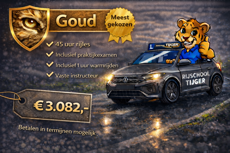 Niet voor niets ons meest gekozen pakket. Ontdek waarom zoveel leerlingen voor Goud kiezen en start snel met rijlessen.
